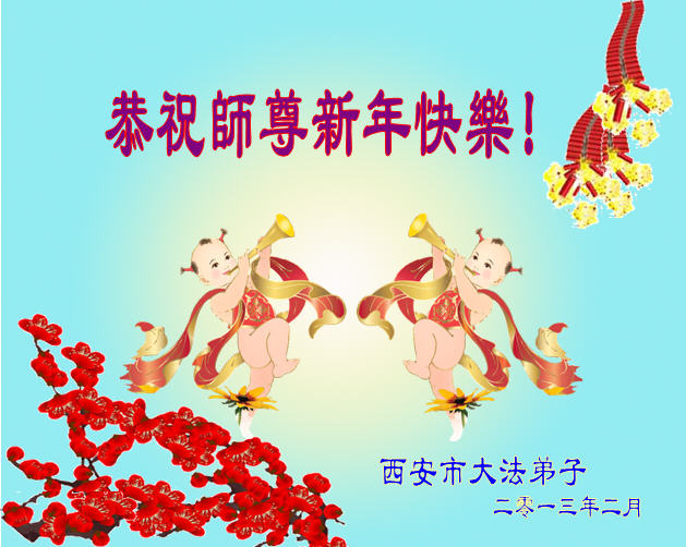 陝西省西安大法弟子恭祝師尊新年快樂!