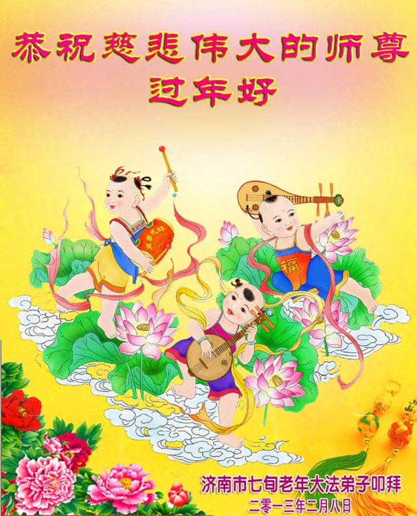 山東省濟南七旬老年大法弟子恭祝慈悲偉大的師尊過年好!
