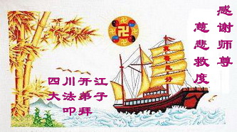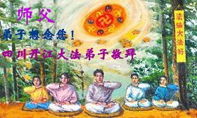 師尊您辛苦了!弟子叩拜師尊。在新的一年裏弟子要聽師尊的話,繼續做好三件事,踏踏實實的修,紮紮實實的修,遇事向內找,整體配合多救人,讓師尊多一份欣慰少一份操勞,做合格的弟子,恭請師尊早日回來。 湖北省武漢市工商銀行大法弟子
