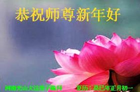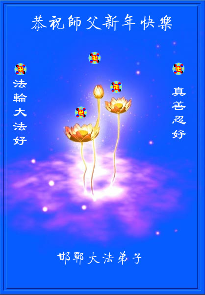 慈悲偉大的師尊您好!師尊您辛苦了!在此我們恭祝師尊新年好!我們全家祖孫四代向慈悲偉大的師尊叩首拜謝!師尊我們想念您,我們等您早日回來。師恩浩蕩難以報,在新的一年裏,唯有精進添正念,做好三件事,放下自我多救人,助師正法了洪願。待到邪惡除盡時,法徒圓滿迎師還。
