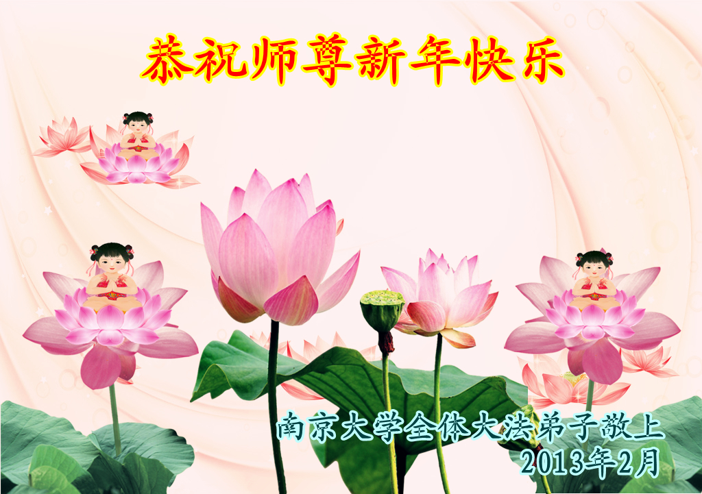 青島大法弟子恭祝師尊新年快樂!弟子跪謝師尊救度之恩!在2013年裏,弟子一定用心去做好自己應該做好的三件事,完成自己的歷史使命,不負師尊的救度之恩!
