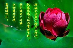 我們全家和本地大法弟子祝師尊新年快樂!感謝師尊的慈悲苦度!師父您辛苦了!在新的一年裏,弟子們會盡最大努力修去常人中的一切執著心,做好師父教給我們的三件事。
