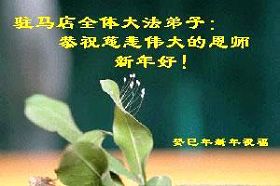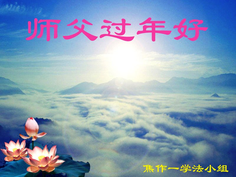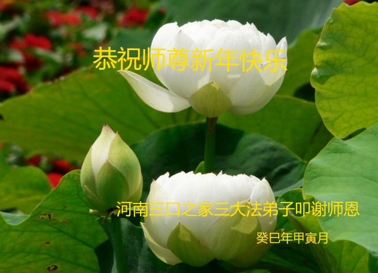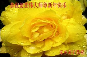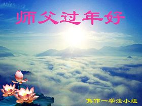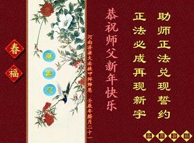 尊敬偉大的師尊新年好!在新的一年裏,在正法的最後值千金值萬金的時刻,我們一定要珍惜這萬古機緣;珍惜師尊給我們延續的每一天,做好三件事,學好法,重視向內找,正念正行救眾生,不辱使命;兌現誓約,無以言表報答師尊的慈悲苦度!