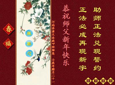 河南省新野縣全體大法弟子恭祝慈悲偉大的師尊過年好!我們一定要緊跟師父的正法進程,做好三件事,完成我們的史前大願,不辜負師父對我們的苦度。