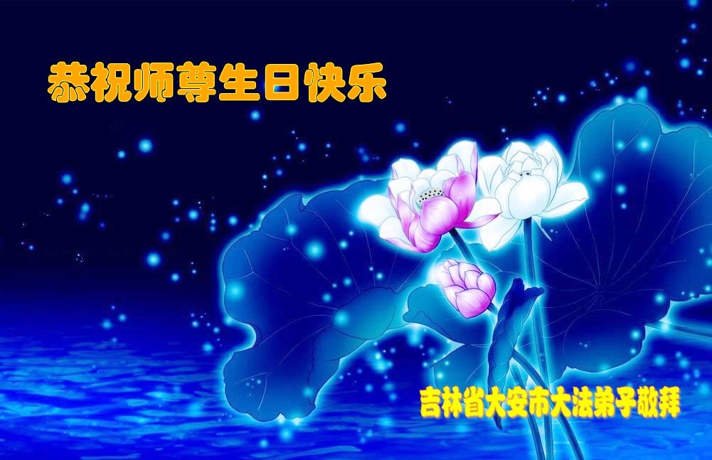 您好!在您華誕和世界法輪大法日來臨之際,我代表長春市朝陽區一學法小組向慈悲偉大的師尊問好,在正法的最後時刻敬請師尊放心,讓師尊少一些操勞,多一些欣慰,一定要走穩走好,做好三件事,遇事向內找,兌現史前誓約,圓滿隨師還。