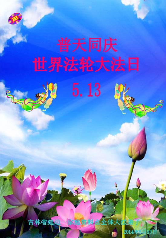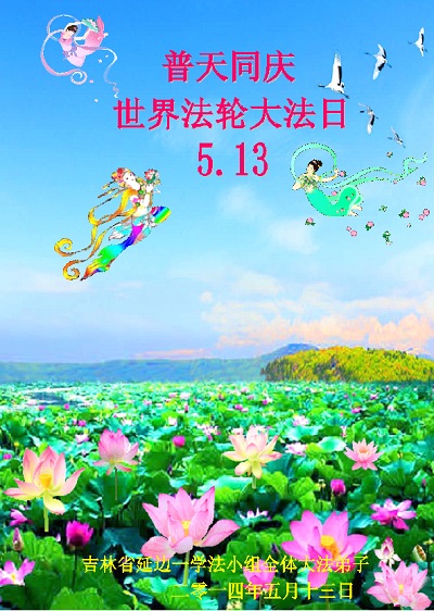 值此法輪大法洪傳二十二週年之際,吉林省延吉市三人學法小組在這裏恭祝偉大的師父生日快樂!並祝賀神聖的5.13法輪大法日又一次到來!