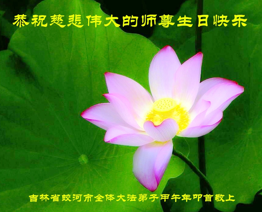吉林蛟河市大法弟子恭祝慈悲偉大的師尊生日快樂!