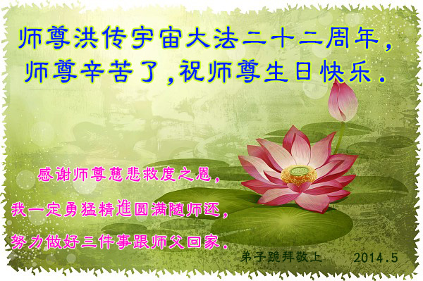 吉林松原一大法弟子恭賀師尊洪傳宇宙大法二十二週年!祝師尊生日快樂!
