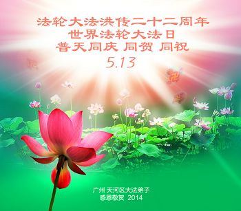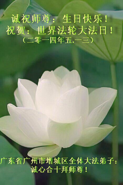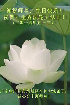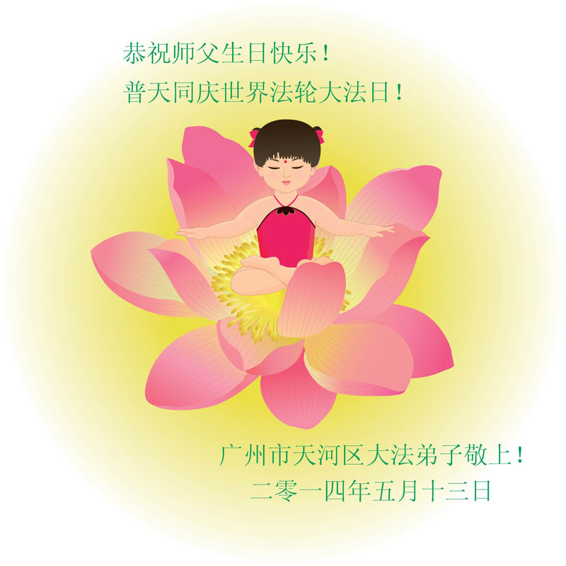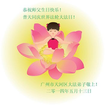 在2014年「5.13」即將來臨之際,廣州市天河區大法弟子代表全家向慈悲偉大的師尊問好!師父您辛苦了!