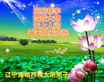 普天同慶世界法輪大法日 祝恩師世界法輪大法日快樂。弟子一定精進實修,形成強大的整體,救度眾生。 遼寧鞍山大法弟子