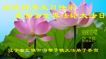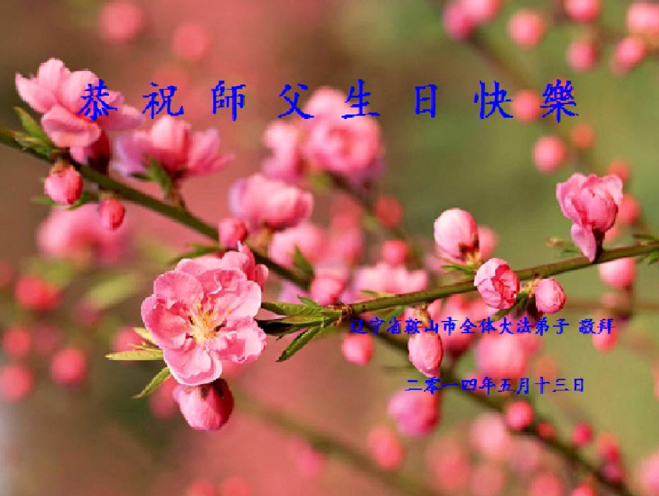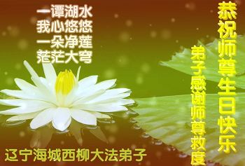 遼寧鞍山大法弟子恭賀法輪大法洪傳二十二週年!恭祝師尊六十三華誕!感謝師尊的慈悲救度!弟子一定努力精進、堅定實修、做好三件事,不辜負師尊的慈悲救度。叩拜慈悲偉大的師尊!