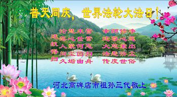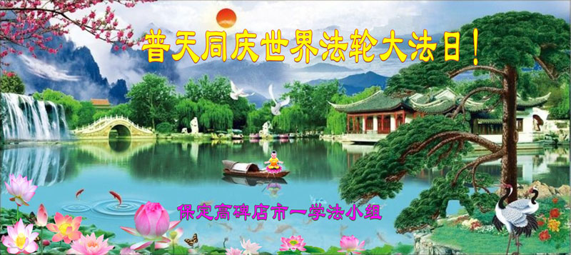河北省保定市唐縣大法弟子衷心祝賀法輪大法洪傳二十三週年,即十六屆世界法輪大法日!