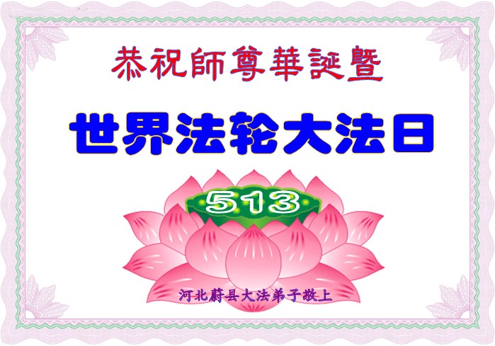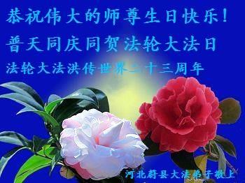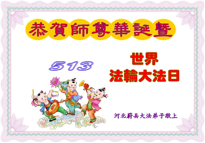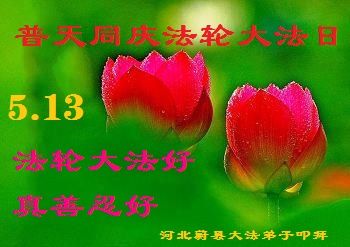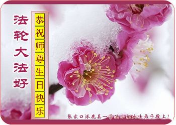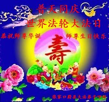 在「五•一三」到來之際,河北省張家口市全體大法弟子恭祝慈悲偉大的師父生日快樂!祝賀全世界大法弟子的神聖節日──世界法輪大法日!在這神聖偉大的日子裏,身在塞外山區的逾萬大法弟子,倍加想念師尊。弟子們會牢記師父的囑託,珍惜師尊用巨大承受為我們延續來的時間,更加精進的做好三件事,學好法,修好自己,救度更多的眾生,不辜負師父的慈悲救度。謹以一首詩詞敬獻給慈悲偉大的師父: