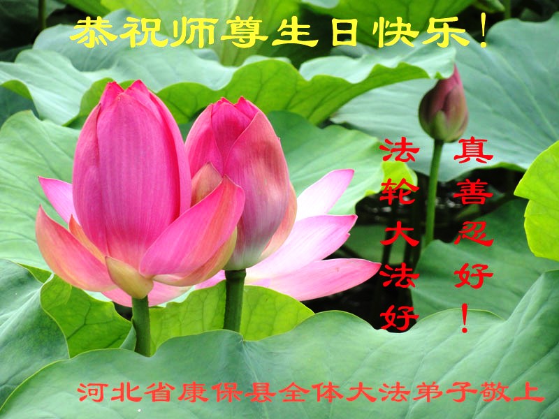 在普天同慶的「世界法輪大法日」來臨之際,懷安縣大法弟子恭祝師父生日快樂!師父,您辛苦了,感恩您的慈悲救度!