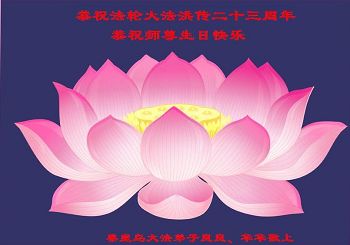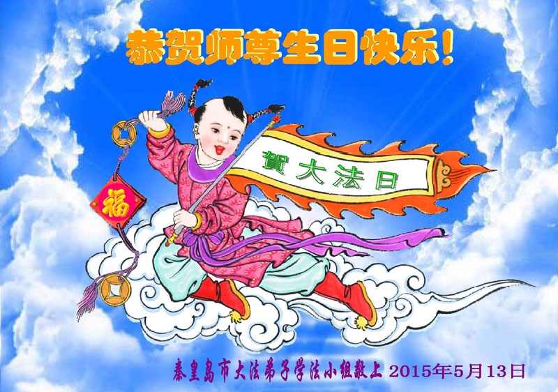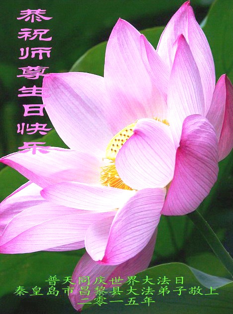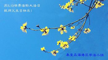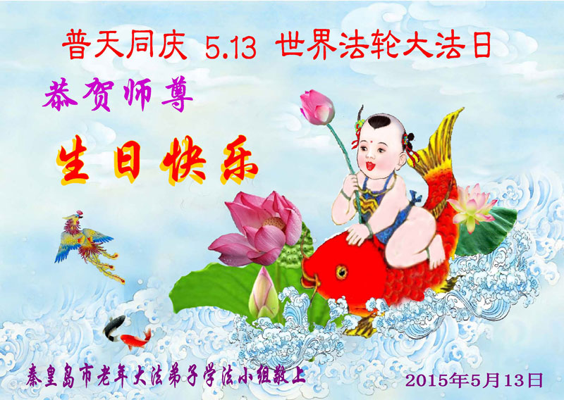 二零一五年五月十三日是世界法輪大法日及師父華誕。在這普天同慶的日子裏,我們學法小組弟子恭祝偉大師父生日快樂!