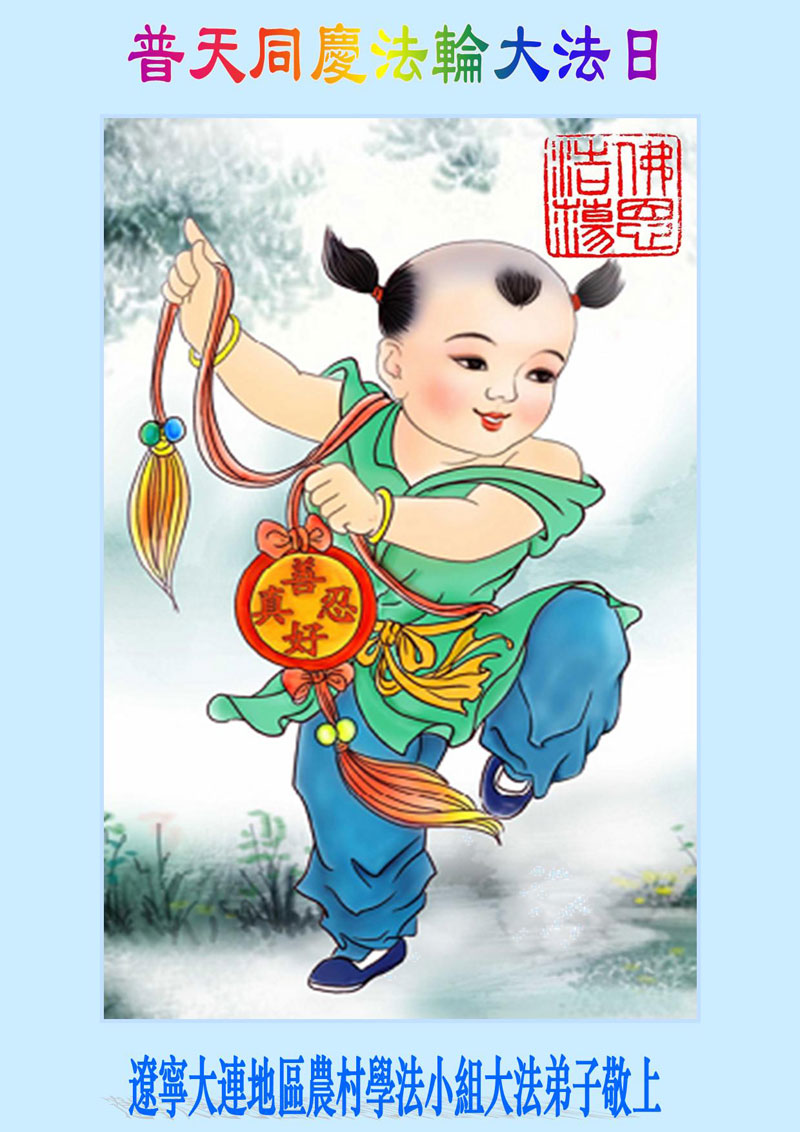 遼寧大連地區農村學法小組大法弟子普天同慶世界法輪大法日!