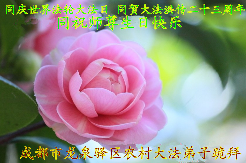 四川省成都市龍泉驛區農村大法弟子同慶世界法輪大法日!同賀大法洪傳二十三週年!同祝師尊生日快樂!