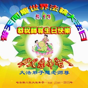 普天同慶法輪大法日,師父辛苦了,弟子想念師父,只有在此遙祝師父生日快樂!是師父引領弟子走上修煉的道路,使弟子走上了返本歸真的回歸之路,弟子會努力做好三件事,跟上師父的正法進程,早日回歸家園。