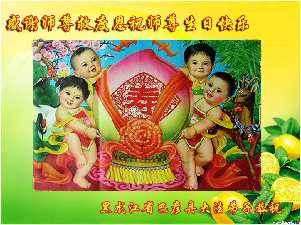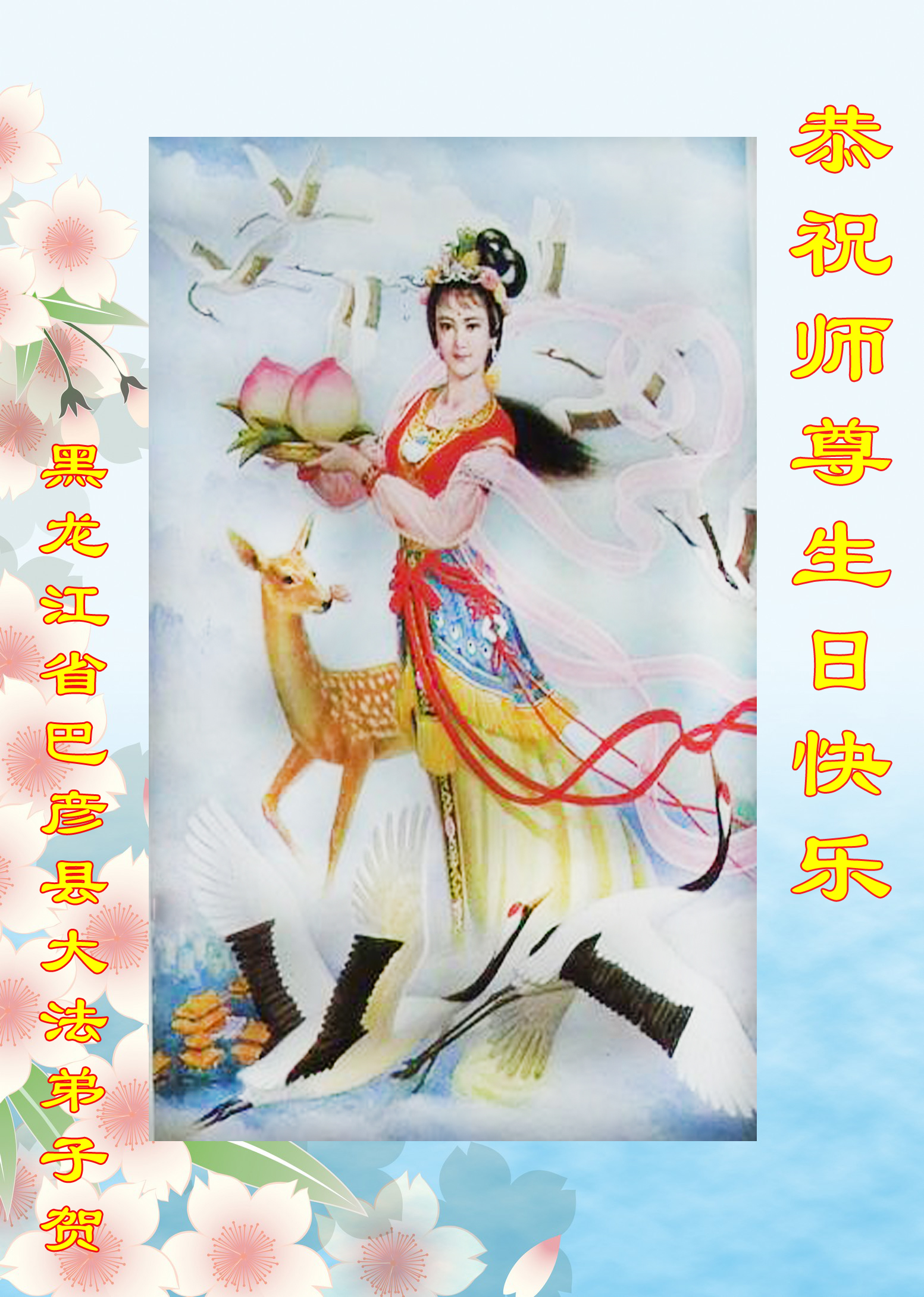 師尊您好!師尊辛苦了!我代表吉林省榆樹市全體大法弟子恭祝慈悲偉大的師尊生日快樂!弟子們感恩師尊的慈悲救度,謝謝師尊!