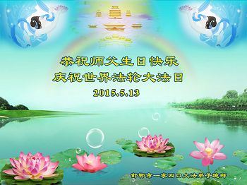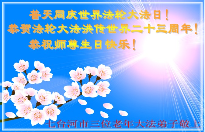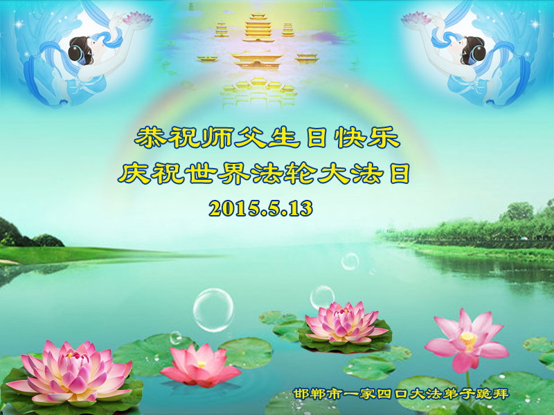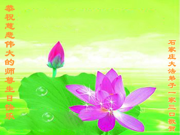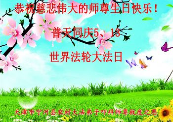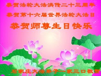 我們一家都是大法的受益者,我們不忘師恩。祝師父生日快樂!恭賀大法傳世二十三週年!第十六屆「世界法輪大法日」願更多的有緣人修大法。