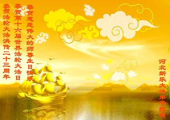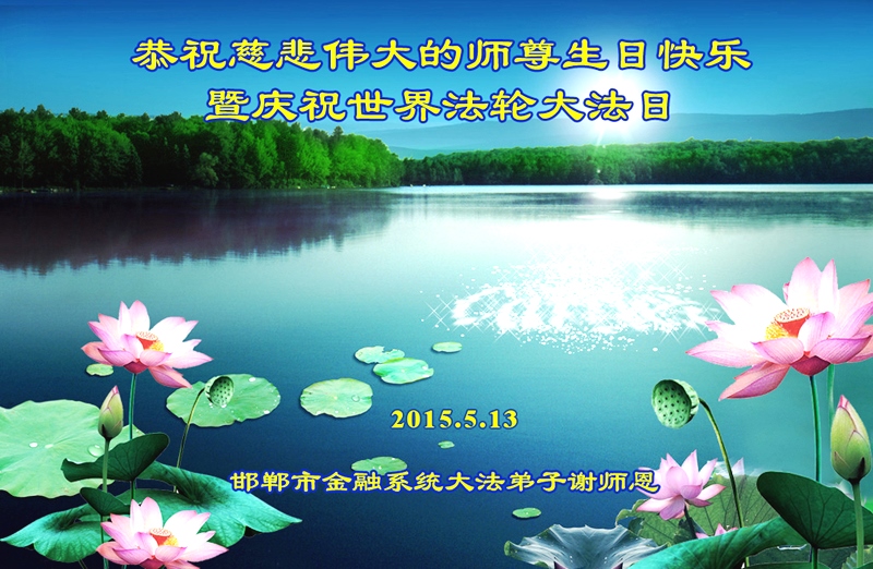 河北省邯鄲金融系統大法弟子恭祝慈悲偉大的師尊生日快樂!暨慶祝世界法輪大法日!