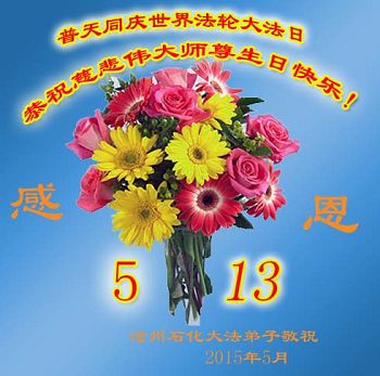 五月十三日是普天同慶的日子,我們和全球大法弟子一道同頌同賀世界法輪大法日,並恭祝師尊生日快樂!