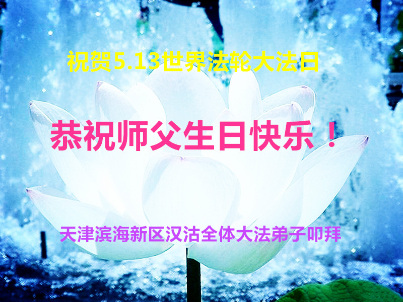 天津大法弟子慶賀第十六屆世界法輪大法日暨師尊傳法二十三週年!恭祝師尊生日快樂!