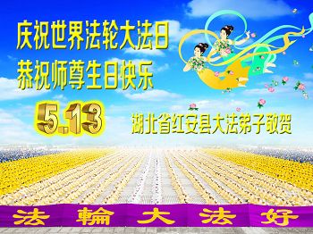 湖北省黃岡市紅安縣全體大法弟子恭賀師尊六十四聖誕暨法輪大法傳世二十三週年!