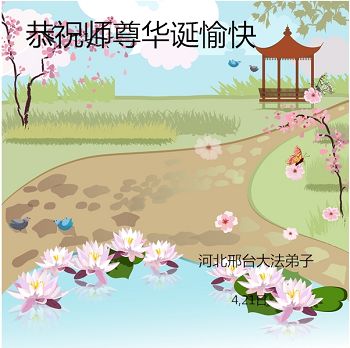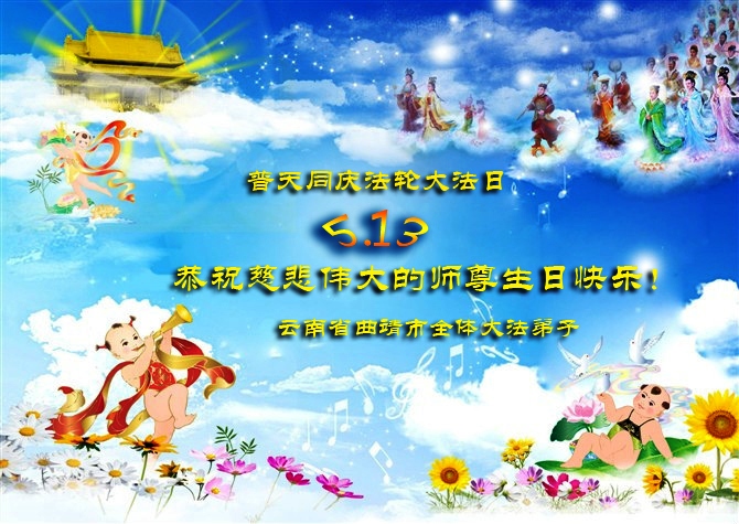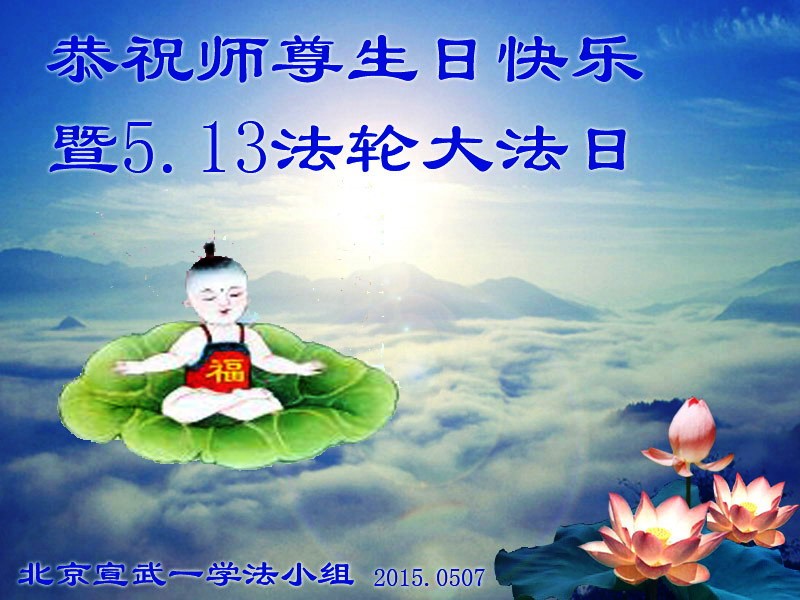 師尊生日好!請師尊放心,我們大陸大法弟子一定做好大法弟子該做的事,以此感謝師尊的救度之恩。同時我們大陸大法弟子同頌同慶五月十三法輪大法日!