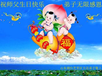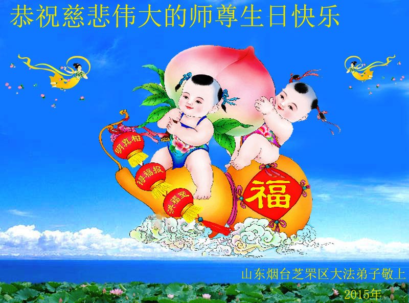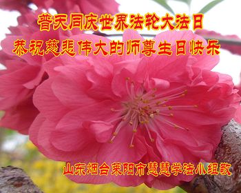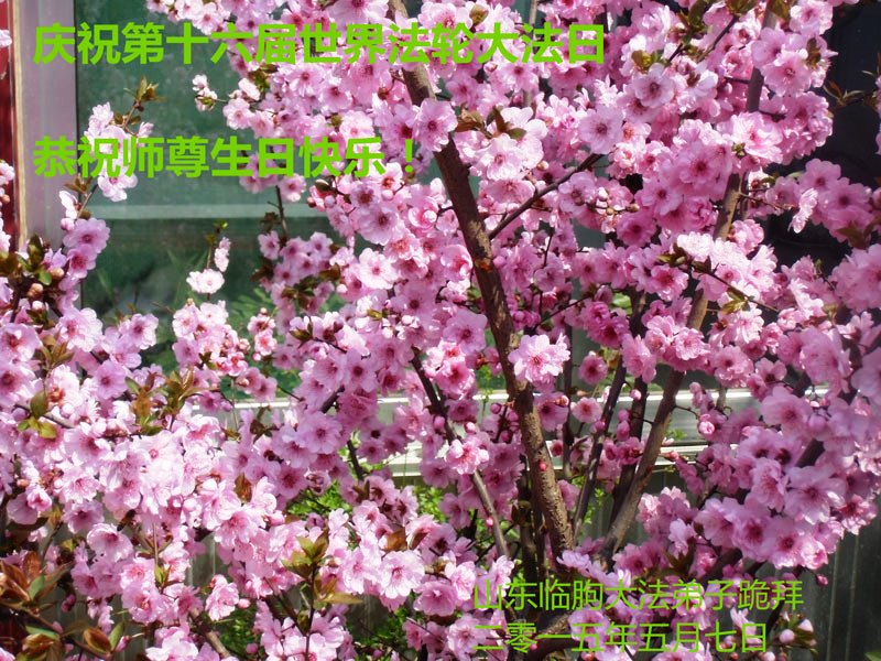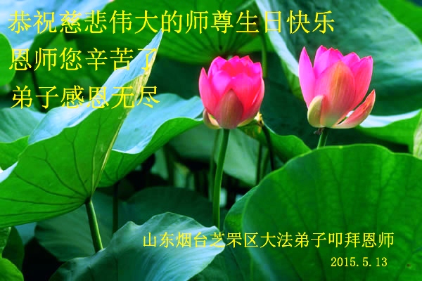 山東鄒平大法弟子在2015年世界法輪大法日來臨之際,恭賀偉大的師尊生日快樂!
