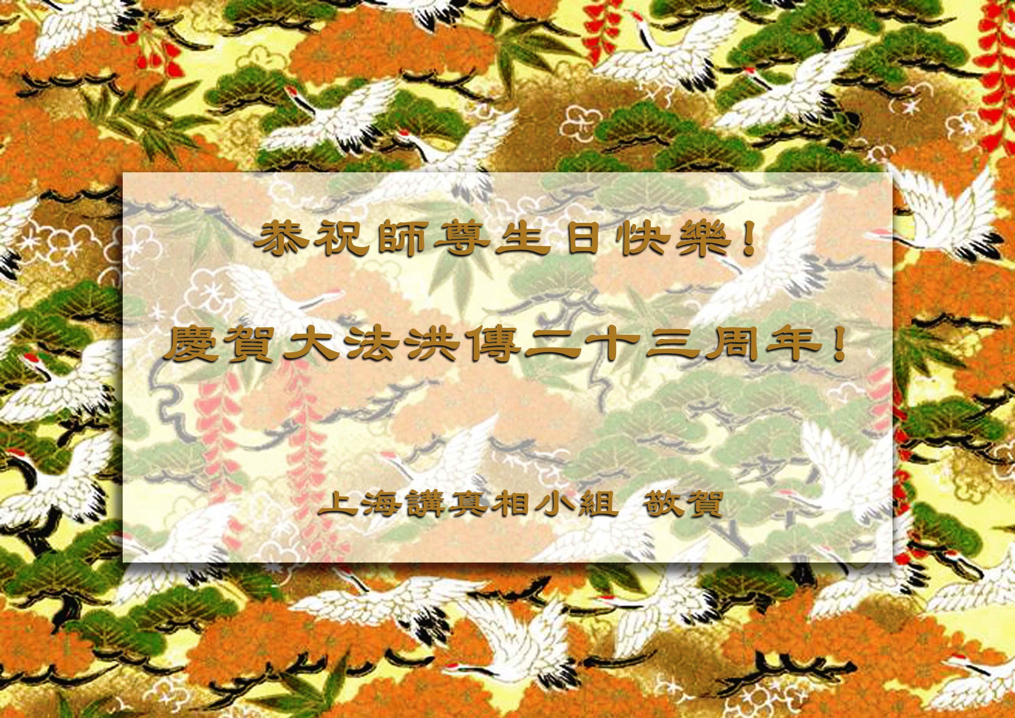 上海浦東七人學法小組恭祝慈悲偉大的師父生日快樂!弟子們一定走好師父安排的路,不辜負師父的慈悲苦度。
