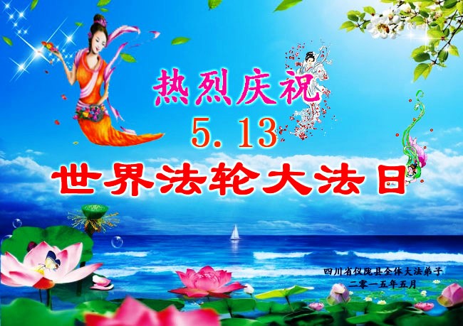 四川省南充市儀隴縣大法弟子恭祝師尊生日快樂並熱烈慶祝513世界法輪大法日!