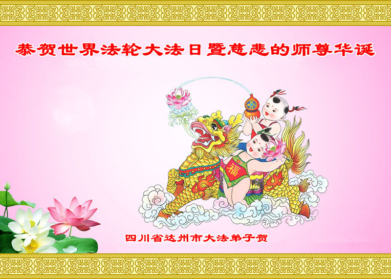 四川省達州市大法弟子恭賀世界法輪大法日暨慈悲的師尊華誕!
