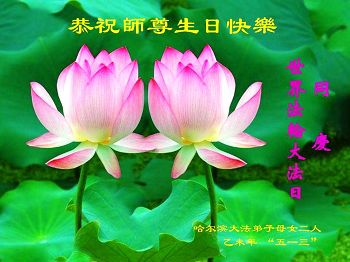黑龍江省哈爾濱大法弟子母女二人恭祝慈悲偉大的師尊生日快樂!同慶世界法輪大法日!弟子們想念師父!