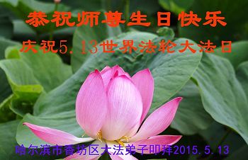 黑龍江省哈爾濱市香坊區大法弟子恭祝師尊生日快樂!慶祝世界法輪大法日!