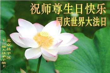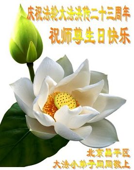 北京昌平區大法小弟子慶祝法輪大法洪傳二十三週年!恭祝師父生日快樂!