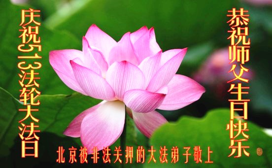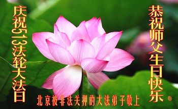 北京被非法關押的大法弟子慶祝法輪大法日!恭祝師父生日快樂!