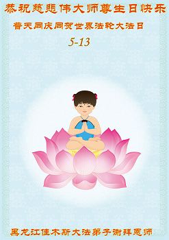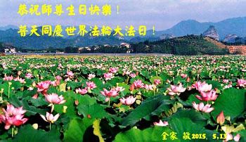 大陸一大法弟子全家恭祝師尊生日快樂!普天同慶世界法輪大法日!