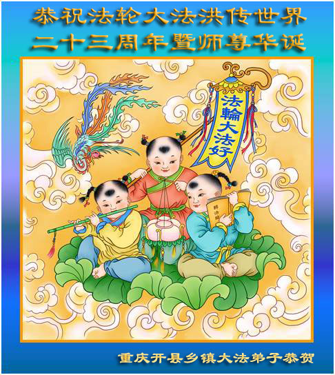 重慶開縣鄉鎮大法弟子恭祝法輪大法洪傳世界二十三週年暨師尊華誕!