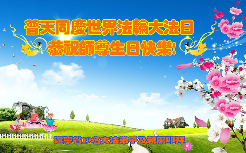 遼寧省19名大法弟子及親朋普天同慶世界法輪大法日!恭祝師尊生日快樂!