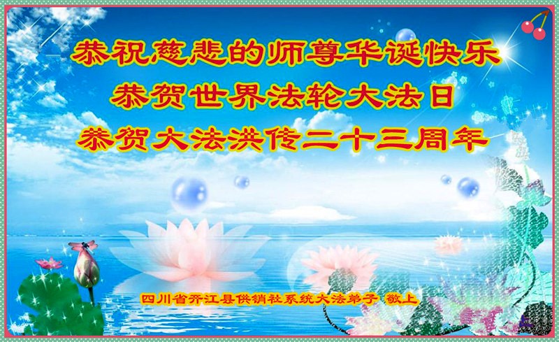 四川省達州市開江縣供銷社系統大法弟子恭祝慈悲的師尊華誕快樂!恭賀世界法輪大法日!恭賀大法洪傳二十三週年!