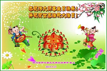四川省達州市開江縣三兄弟大法弟子恭祝偉大師尊生日快樂!並祝賀世界法輪大法日!