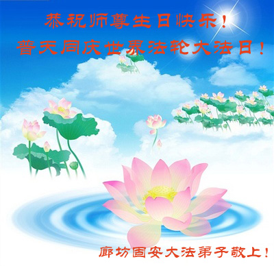 河北廊坊固安全體大法弟子恭祝慈悲偉大的師尊生日快樂!普天同慶世界法輪大法日!