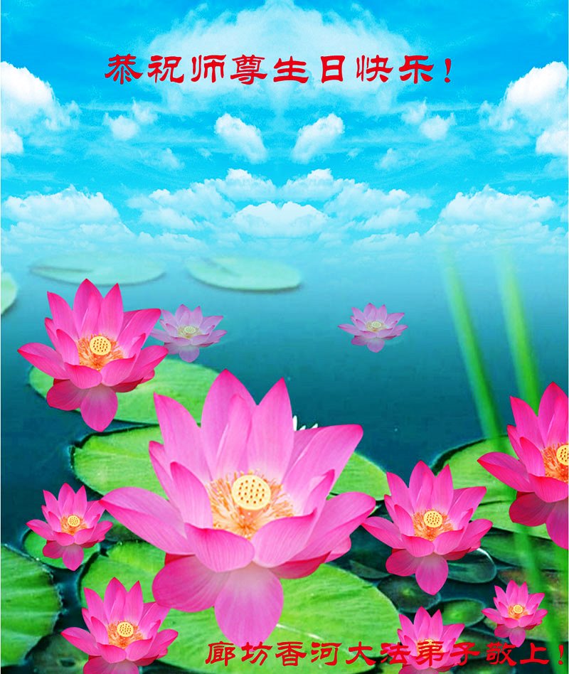 河北廊坊香河五人學法小組大法弟子恭祝師尊生日快樂!