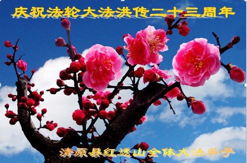 遼寧省撫順市清原縣紅透山全體大法弟子慶祝法輪大法出二十三週年!