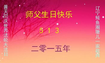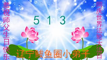 遼寧鱍魚圈大法小弟子普天同慶世界法輪大法日!恭祝師尊生日快樂!