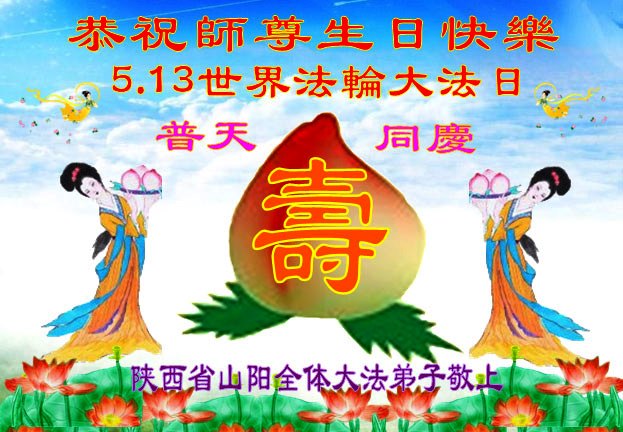 陝西省山陽全體大法弟子恭祝師尊生日快樂!普天同慶世界法輪大法日!