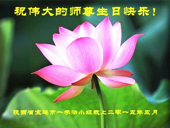 陝西省寶雞市一學法小組大法弟子恭賀偉大慈悲的師尊生日快樂!祝賀法輪大法洪傳世界二十三週年!