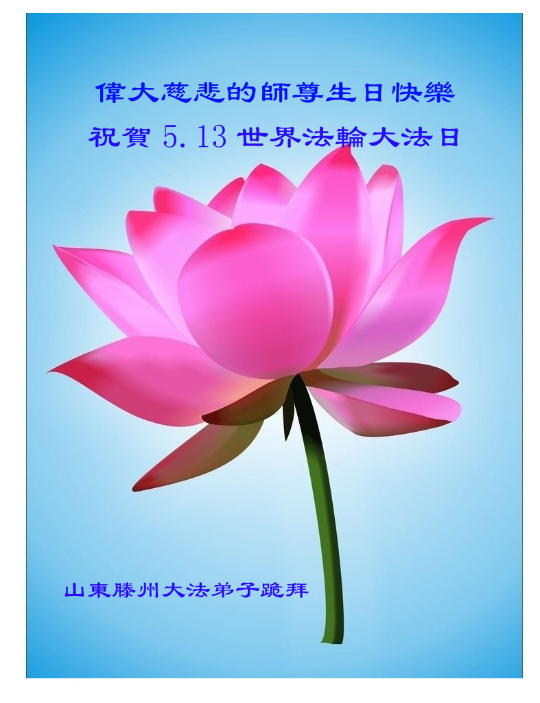 山東省棗莊市滕州市弟子恭祝偉大慈悲的師尊生日快樂!祝賀5.13世界法輪大法日!