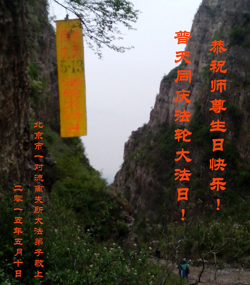 北京市一對流離失所大法弟子恭祝師尊生日快樂!普天同慶法輪大法日!